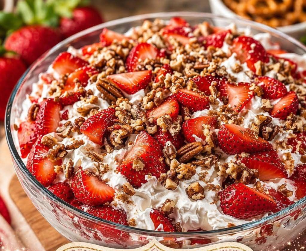 This dessert has been around for decades, often called “Strawberry Pretzel Salad” or “Strawberry Jello Salad.” It is not a salad in the traditional sense — it is a layered dessert that combines sweet, salty, and creamy elements in perfect harmony.